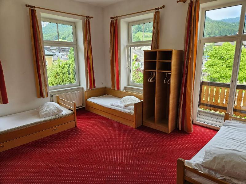 Vous serez logés à la Luise-Wehrenfennig-Haus, en plein centre de Bad Goisern. Toutes les chambres de 3 et 6 lits disposent d'une salle de bains et de toilettes privatives. Vous trouverez également de spacieuses salles de séminaire pour les cours, ainsi qu'un grand terrain de sport et une pelouse pour jouer au football devant la maison. La gare et la piscine en plein air sont accessibles en quelques minutes à pied.