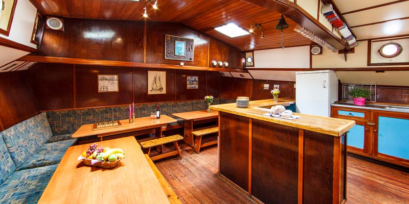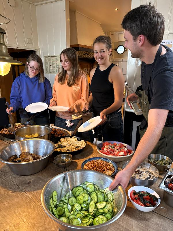 Je krijgt heerlijk volpension. Onze uitstekende kok aan boord hecht bijzonder veel waarde aan lekker eten. Een belangrijk onderdeel van het programma is het gezamenlijk bereiden en koken van de maaltijden, wat betekent dat we zelf koken.