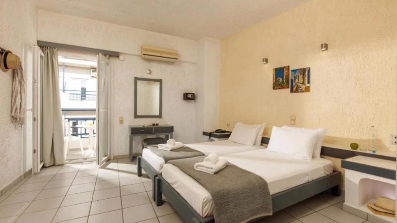 Hotel Agrabella is ideaal gelegen in Chersonissos, op loopafstand van de levendige hoofdweg met talloze winkels, bars en restaurants, en nabij The Strip, dé uitgaansbuurt van de stad. Ondanks de bruisende omgeving biedt het hotel een oase van rust, perfect om te ontspannen tussen het feesten door. Gerund door een lokale, Griekse familie, straalt het hotel een warme en huiselijke sfeer uit.