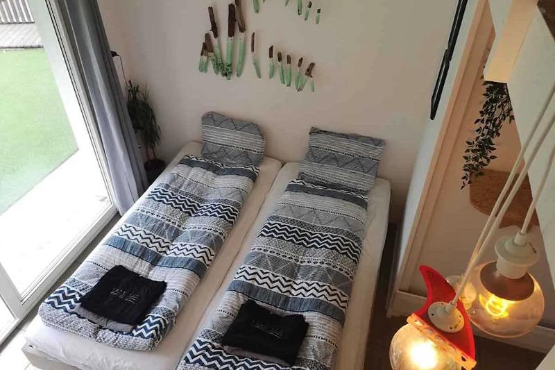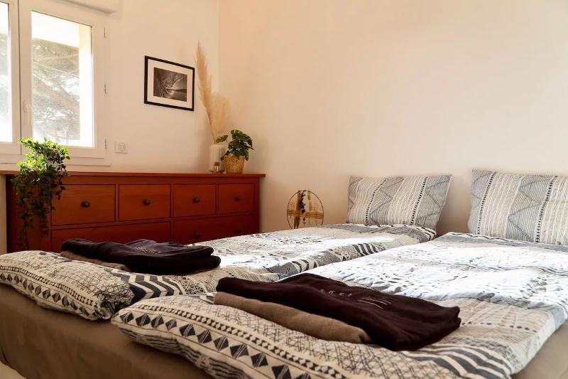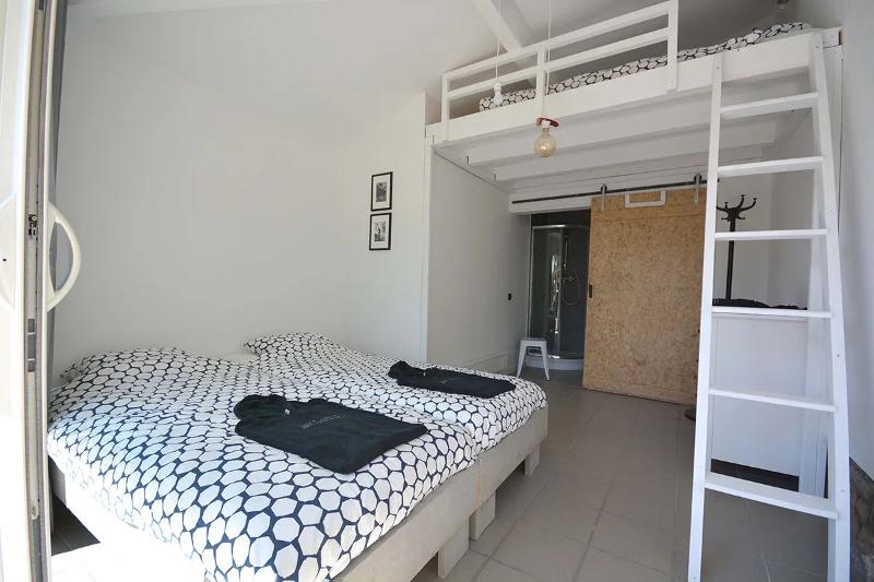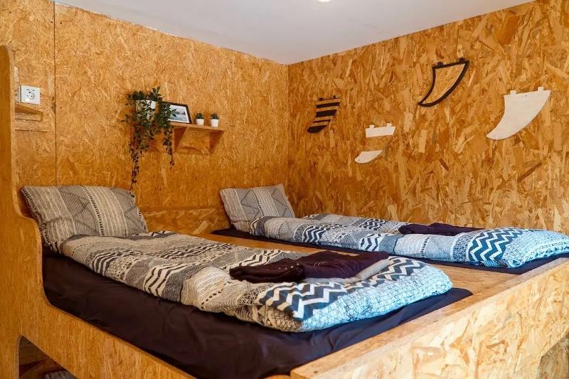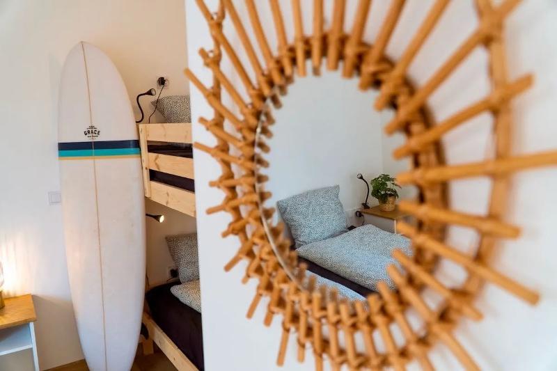 Buiten het hoogseizoen van de B&B in Zuid-Frankrijk is er ook een gedeelde kamer met stapelbedden beschikbaar. Deze optie is ideaal voor solo-reizigers of surfers die liever budgetvriendelijk reizen en willen golfsurfen in Frankrijk. De dorm beschikt over een eigen badkamer die wordt gedeeld met de andere gasten die in de kamer verblijven. In totaal biedt de dorm plaats aan maximaal zes personen.